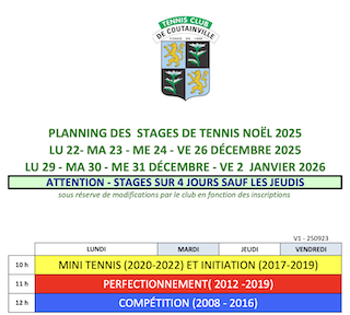Toutes les personnes inscrites à un stage de tennis (hors cours individuels à l’unité) bénéficient de leur inscription tennis offerte au TCC pendant toute la semaine de stage, du lundi au vendredi.